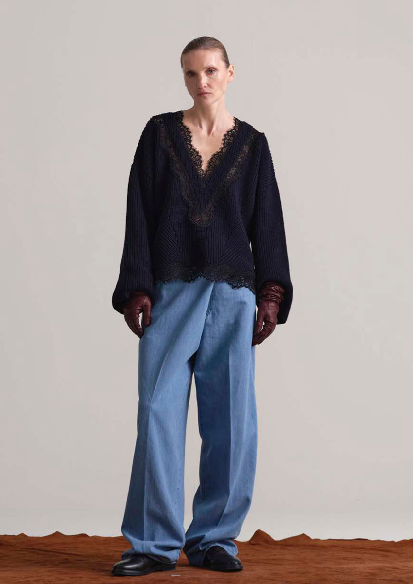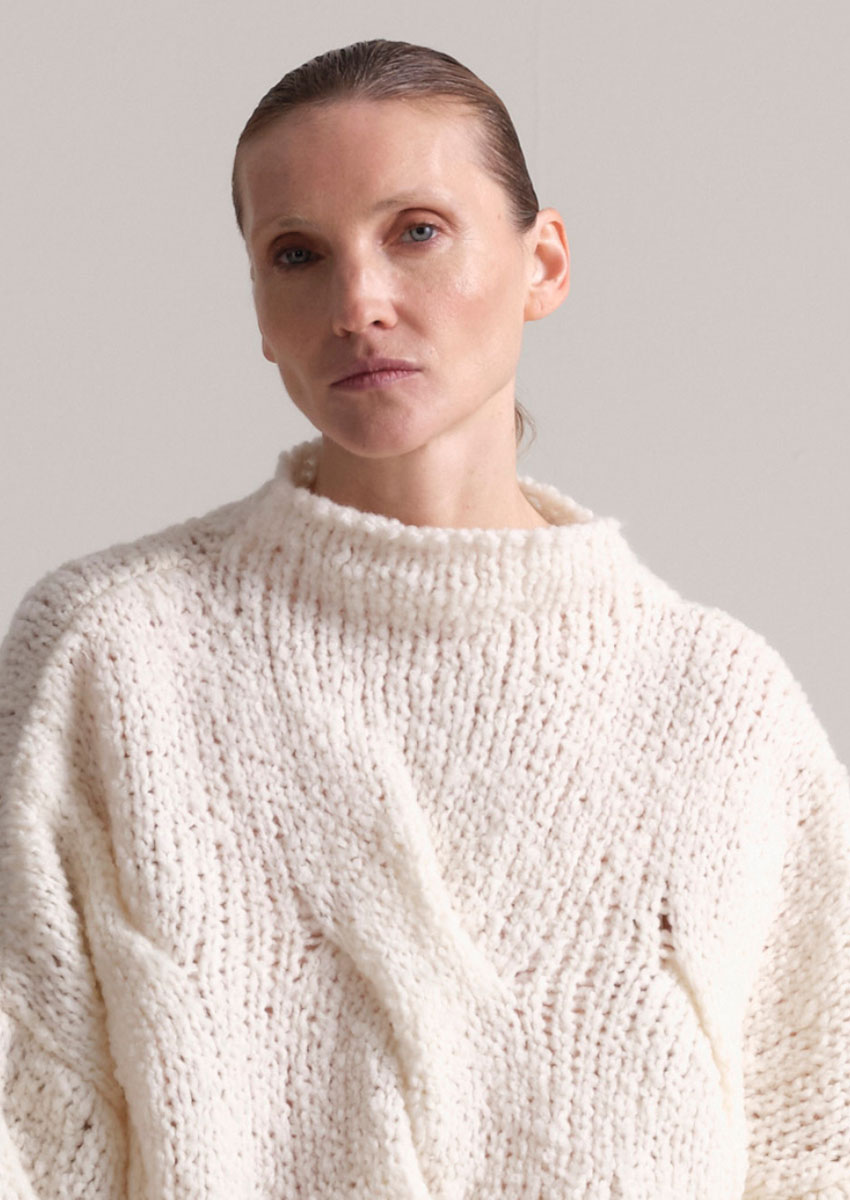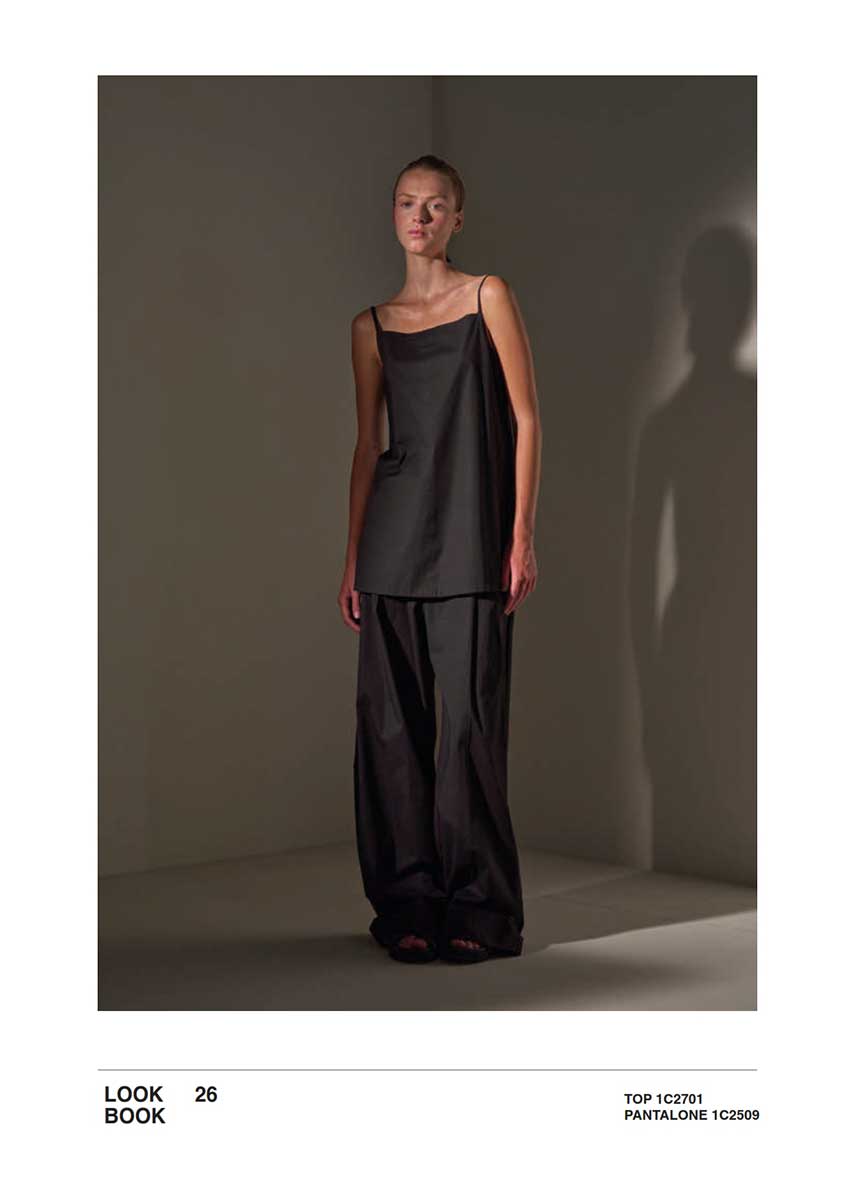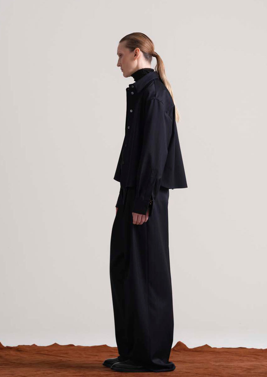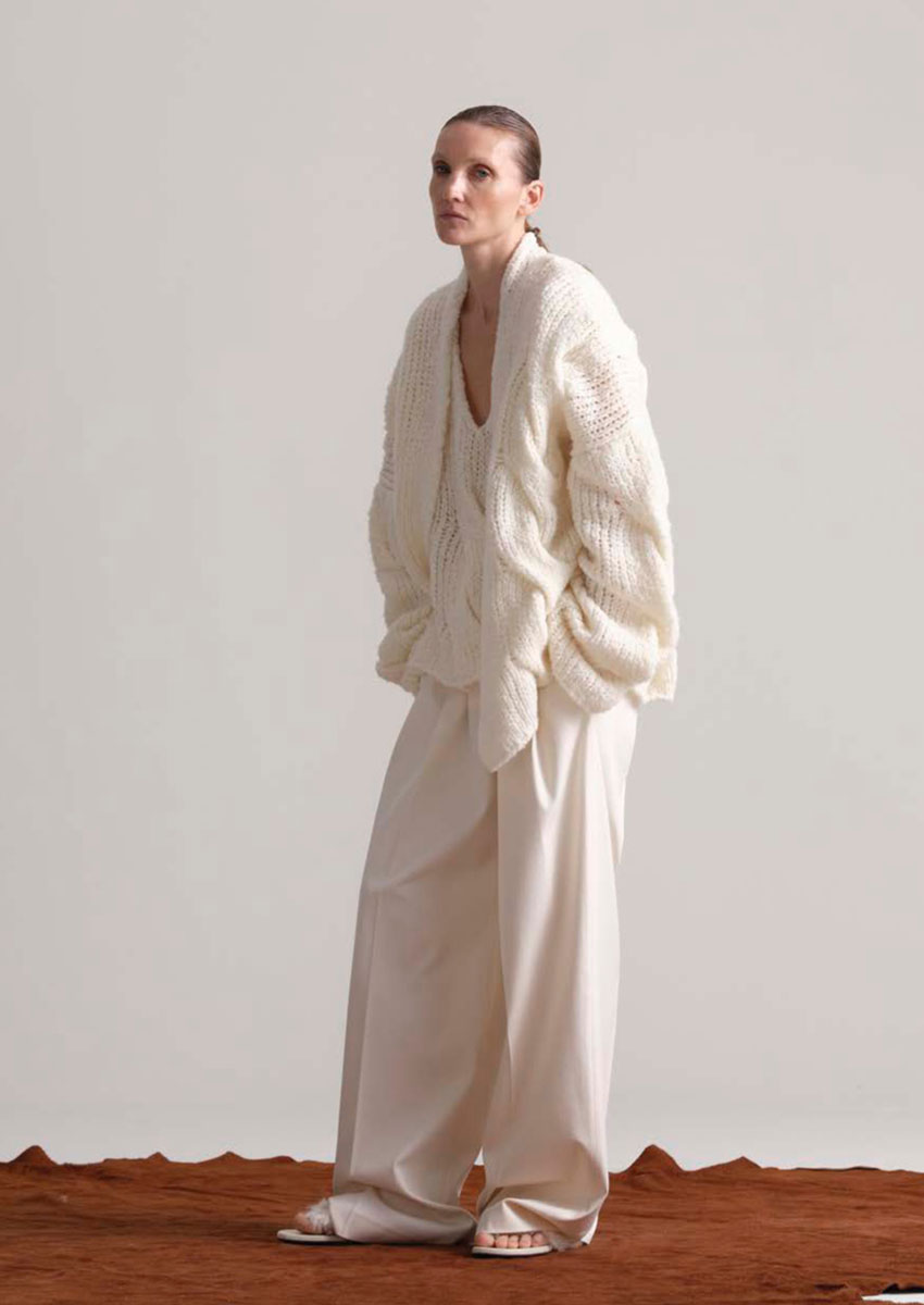 Designer Daniele Calcaterra, 1973 in Mailand geboren, bringt seine Erfahrung aus internationalen Luxusmarken und sein Gespür für Stoffe, Formen und Bewegungen ein. Seine Handschrift verbindet italienische Handwerkskunst mit innovativem Design, minimalistisch und doch raffiniert.